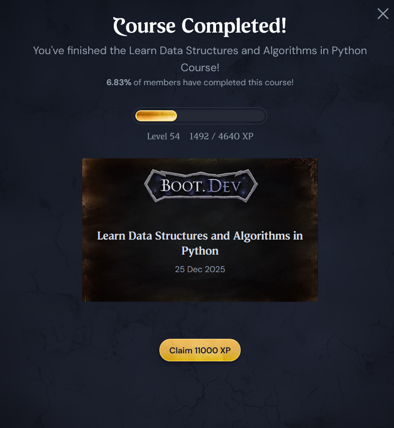 During my one week vacation and the christmas break I managed to complete the Data Structures and Algorithms course.